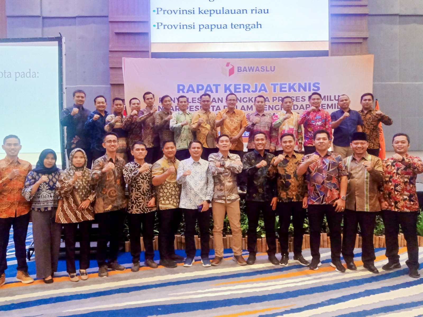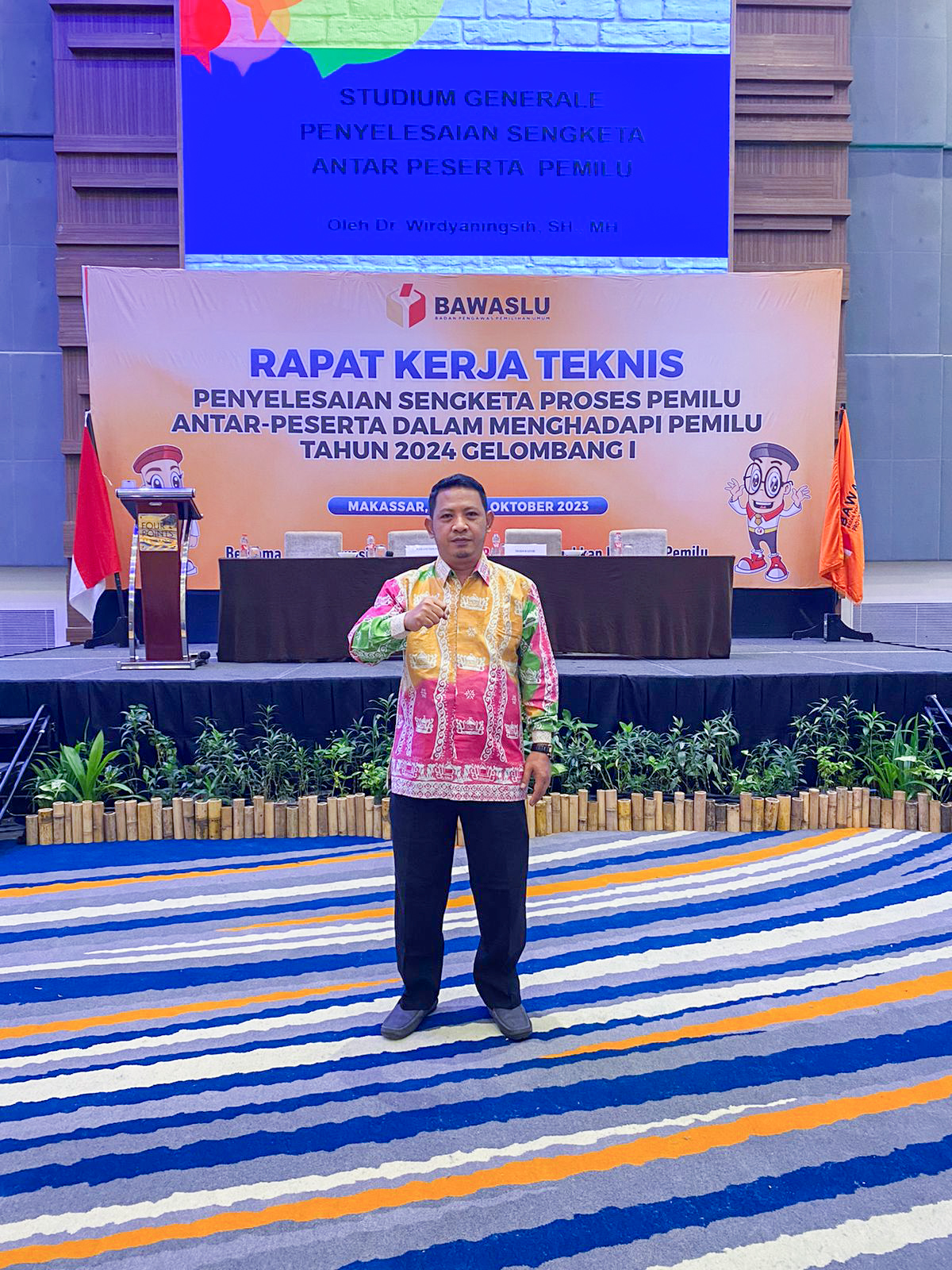 Makassar- Badan Pengawas Pemilihan Umum (Bawaslu) - Anggota Bawaslu Tulang Bawang Barat Cecep Ramdani, S.Sos.,M.IP dan staf pelaksana teknis Sekretariat Mindri Yasto, S.E ikuti Rapat Kerja Teknis (Rakernis) Penyelesaian Sengketa Proses Pemilu antar-Peserta Dalam Menghadapi Pemilu Tahun 2024 Gelombang I bertempat di Four Points by Sheraton Makassar Kec. Rappocini, Kota Makassar, Sulawesi Selatan (18/10/2023).